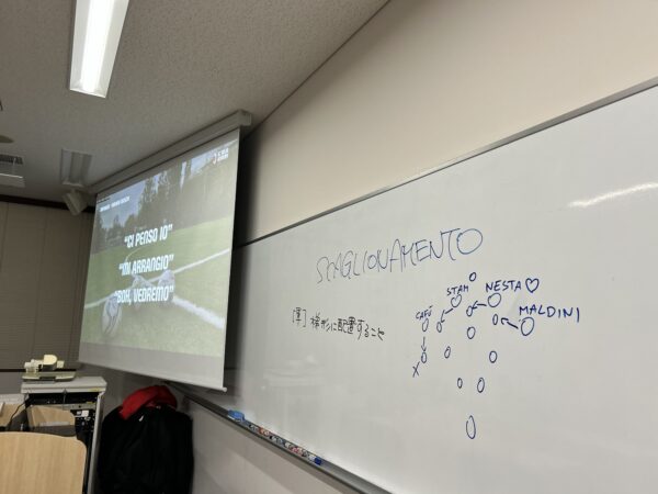 学生さんの好奇心にスイッチが入ったのか、ホワイトボードにフォーメーション図が書き記されます。
